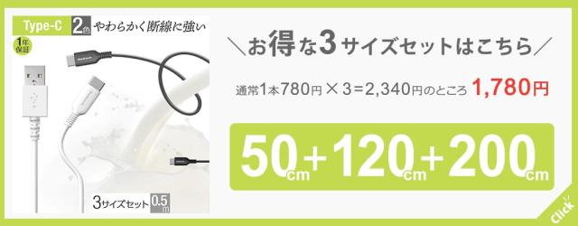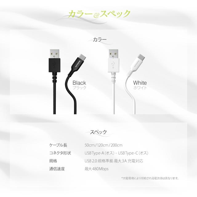 USB Type-Cケーブル 充電 データ転送 50cm 120cm 200cm 3A 1年保証 断線に強い