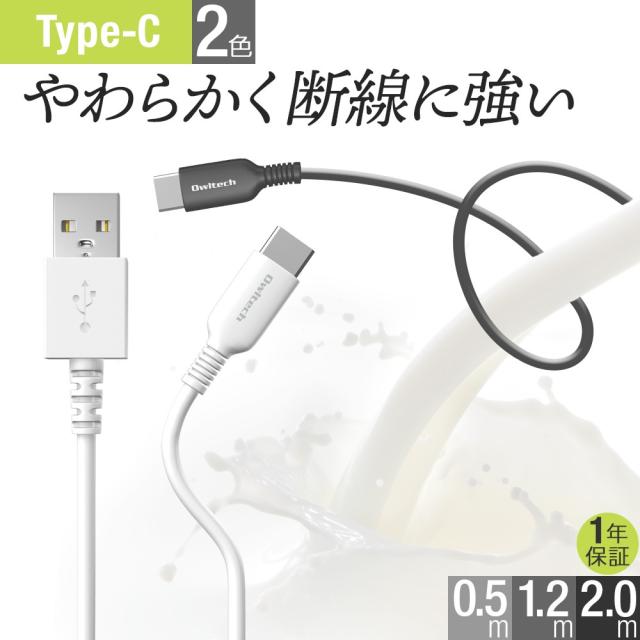 断線に強い 0.5m 1.2m 2m 充電 ケーブル Type-C タイプC typec Android アンドロイド スマホ スマートフォン 携帯 充電器 モバイルバッテリー USB-C type-c 充電ケーブル usb type-cケーブル type-c 充電器 タイプC Nintendo Switch 在宅 ブラック ホワイト Owltech owltech オウルテック おうるてっく