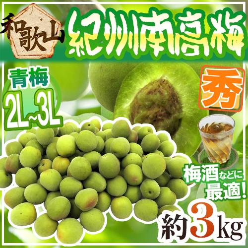 ”紀州・和歌山産 南高梅 青梅” 秀品 2L〜3L 約3kg【予約 5月中旬以降】 送料無料