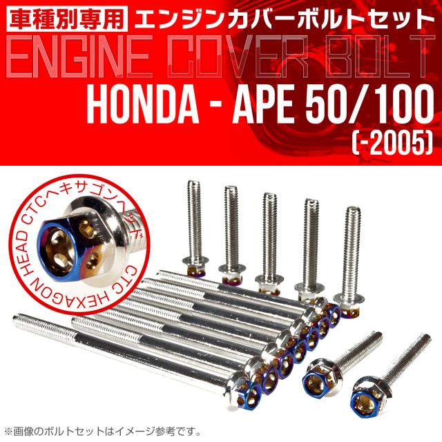 エイプ 50 100 -2005 エンジンカバーボルト 14本set CTCヘキサゴンヘッド 銀&焼チタン TB6159