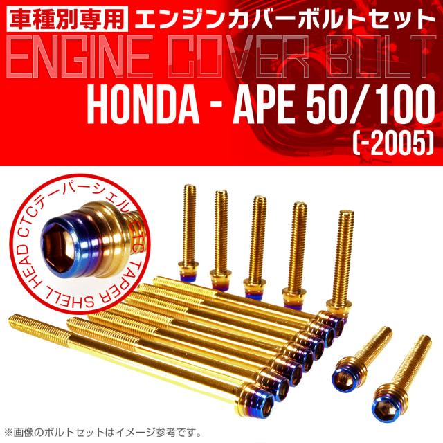 エイプ 50 100 -2005 エンジンカバーボルト 14本set CTCテーパーシェルヘッド 金&焼チタン TB6162