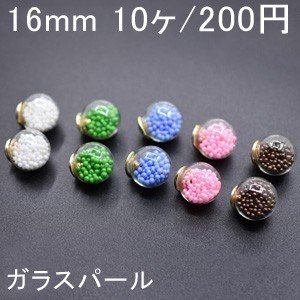 サイズ:約16mm 入数:10ヶ/パック 素材:真鍮製、ガラス製 金具の色:ゴールド ガラス内部:ガラスパール
