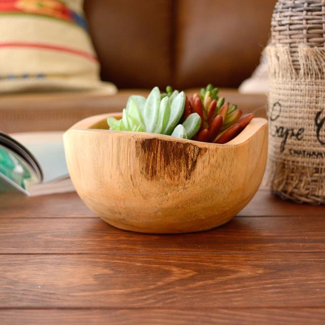 天然チークウッドのボウル型プランターカバー Sサイズ