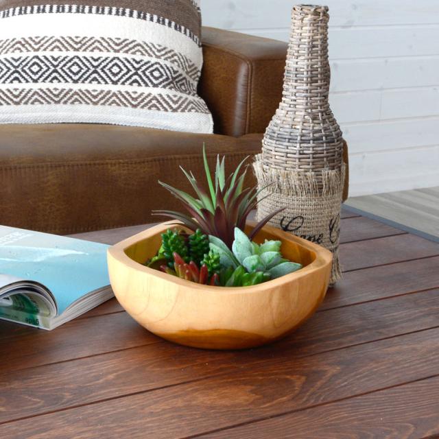 ウッドボウル プランター トレイ 小物入れ 木製 天然チークウッド Lサイズ 西海岸 男前