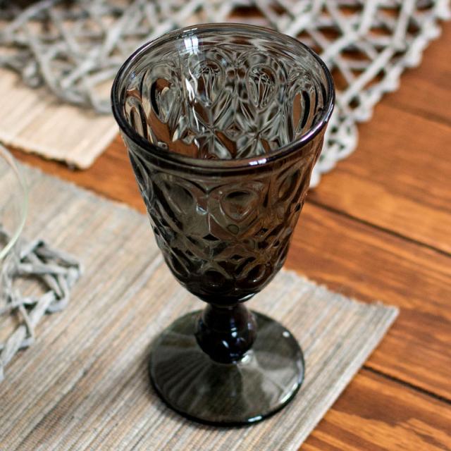 ワイングラス グラス 脚付き ダイヤモンドカット ガラス製 グレー ウォーターグラス ステムグラス コップ 黒 ブラック