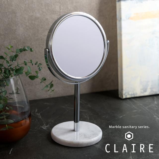 ミラー 鏡 卓上 スタンド 両面鏡 丸型 拡大鏡 直径約16.5cm ホワイト 大理石 マーブル模様 洗面