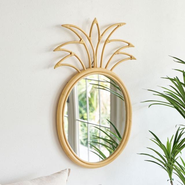 鏡 ミラー 壁掛け ラタン ラウンド アジアン雑貨 ウォールデコレーション 円形 インテリア ナチュラル パイナップル 13705