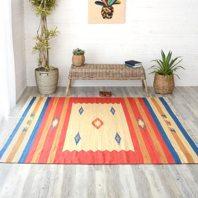 ラグマット ラグ カーペット キリムラグ コットンキリム おしゃれ 200×200cm Bタイプ インド綿 オルテガ ネイティブ 民族