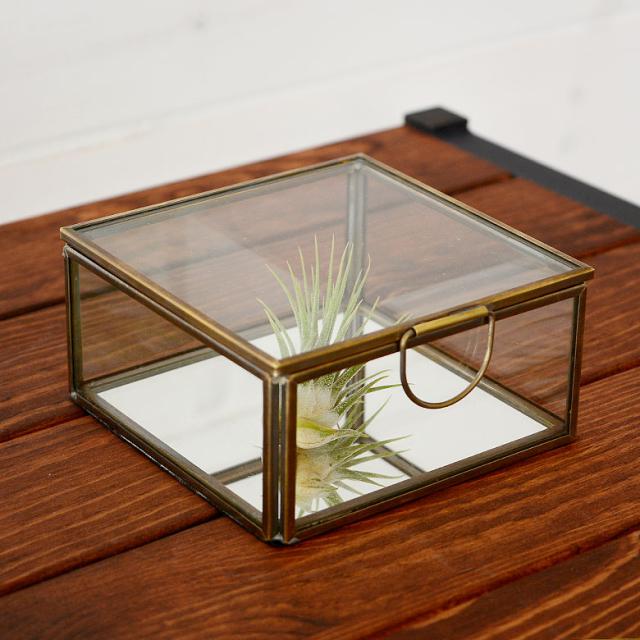 ガラスと真鍮でできた鏡付き収納ケース Sサイズ