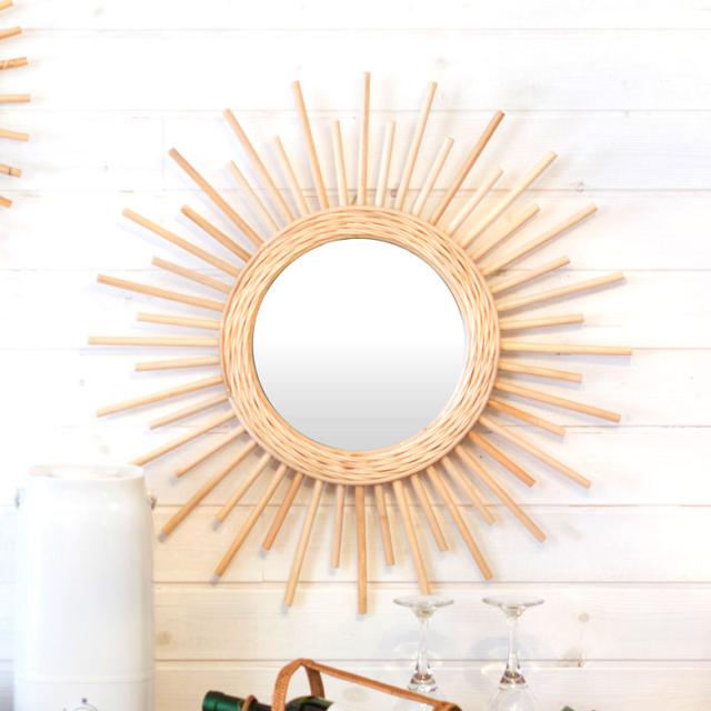 ミラー 鏡 壁掛け ウォールミラー 丸型 ラタン 飛散防止ミラー 壁掛けミラー サンミラー アジアン バリ おしゃれ 洗面
