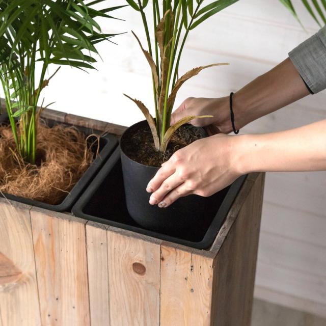 植物を植木鉢ごと入れて、お部屋の中でも安心して水やりができます。
