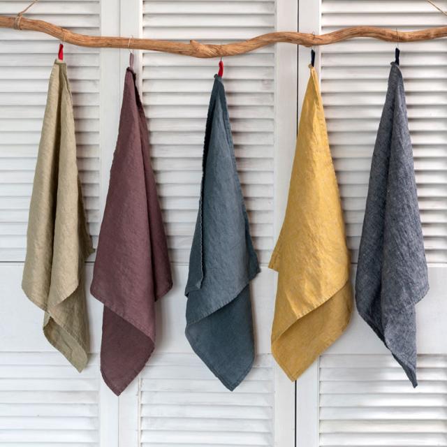 メール便対応 クロス ふきん 台拭き 台ふき Lino e lina リーノ エ リーナ 正方形 リネン ストラップ付 ベージュ パープル イエロー グレー ブルー 麻