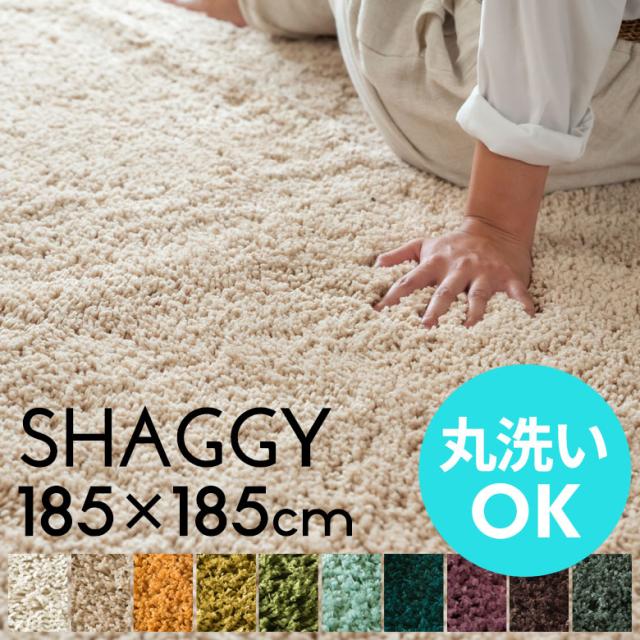 ラグ ラグマット 洗える マイクロファイバー シャギーラグ 185×185cm 強力滑り止め付き 185×185 2畳 大きめ ラグ カーペット 正方形 厚手 ラグカーペット おしゃれ ホットカーペット対応 絨毯 じゅうたん 北欧 床暖房対応 グリーン ホワイト アイボリー ブラウン