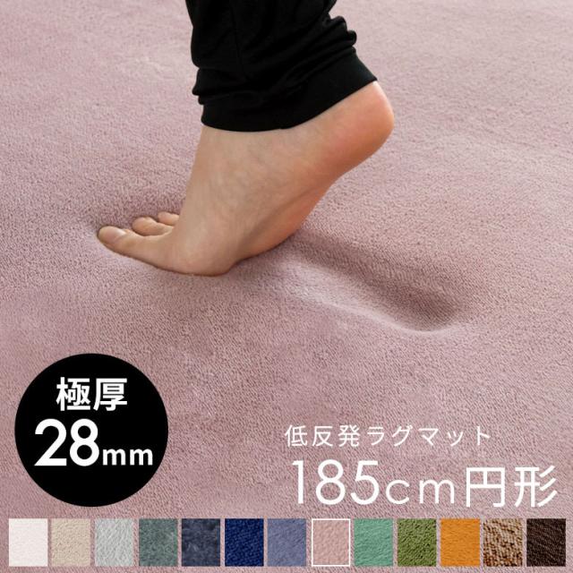 ラグマット カーペット 低反発 約185cm円形 ラグ リビングラグ マイクロファイバー じゅうたん 厚手 28mm ラウンド