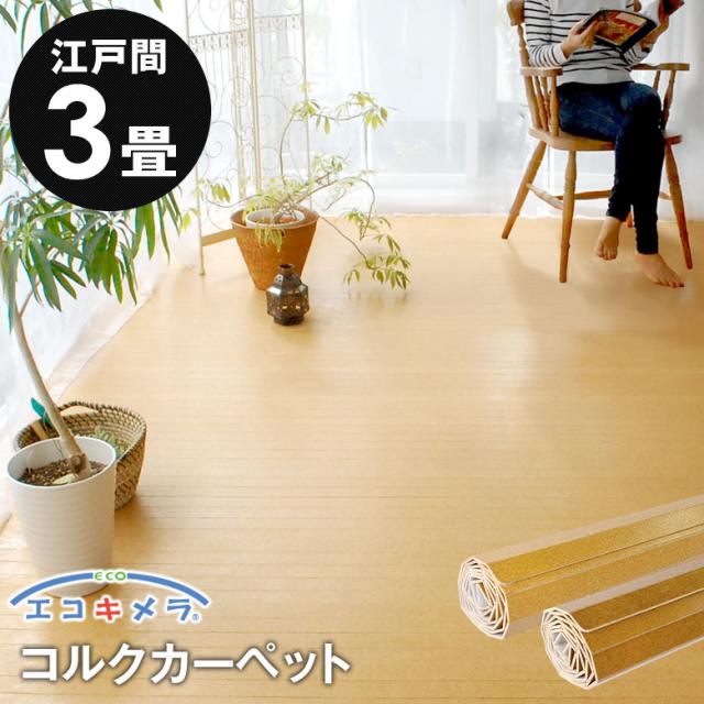 コルクカーペット 江戸間 3畳用 175×260cm 床材 抗菌 消臭 エコキメラ フローリング カーペット DIY 簡単 敷くだけ 1梱包