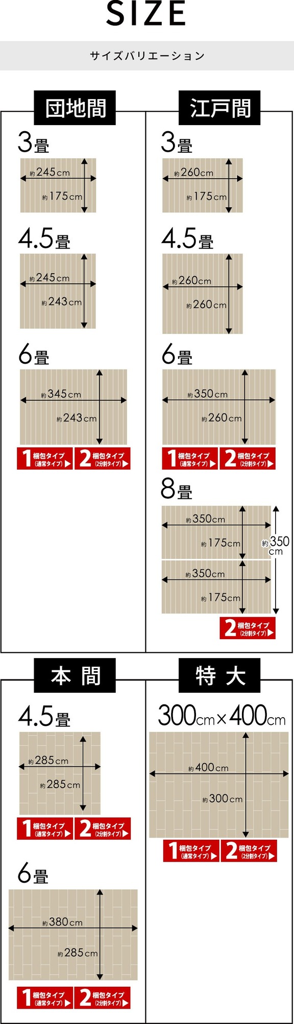 只今、2分割で敷きやすい【2梱包】タイプの販売ページです。