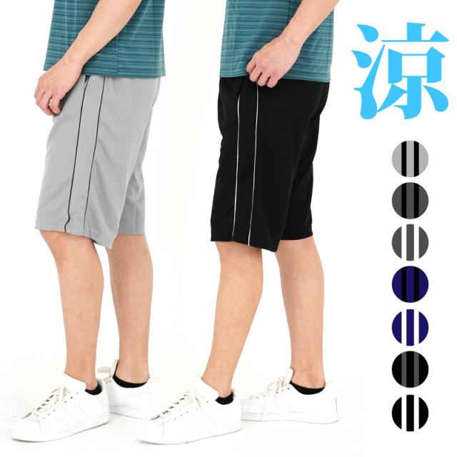 ハーフパンツ メンズ 吸汗速乾 ジャージ メッシュ スポーツ ショートパンツ 短パン 夏 部屋着 ルームウェア 大きいサイズ パイピングラインジャージ ハーフパンツ【3208】M L LL