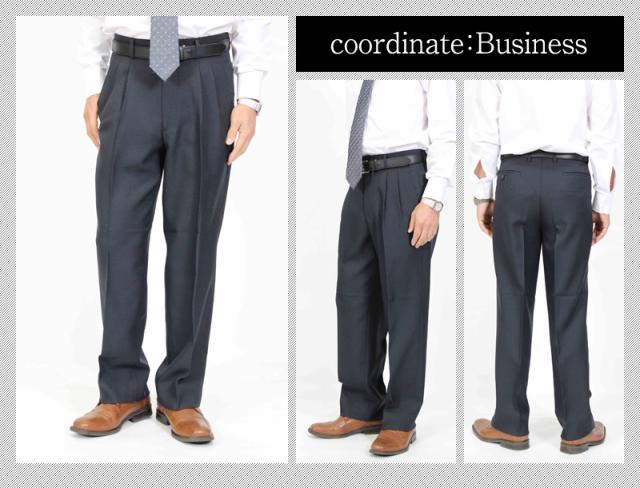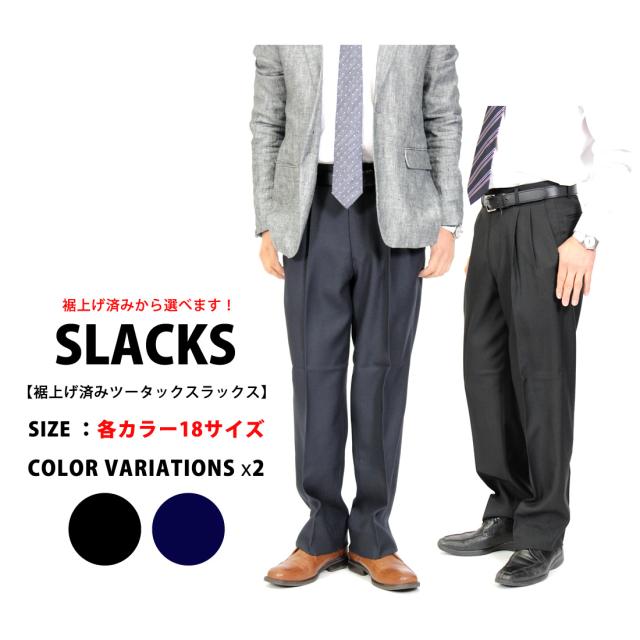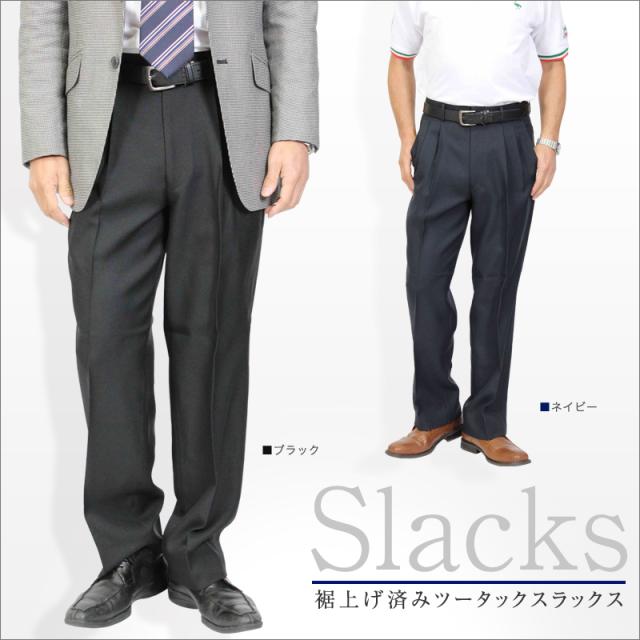 スラックス メンズ ビジネス ツータック 裾上げ済み ゴルフ 家庭洗濯可 ネイビー ゆったり