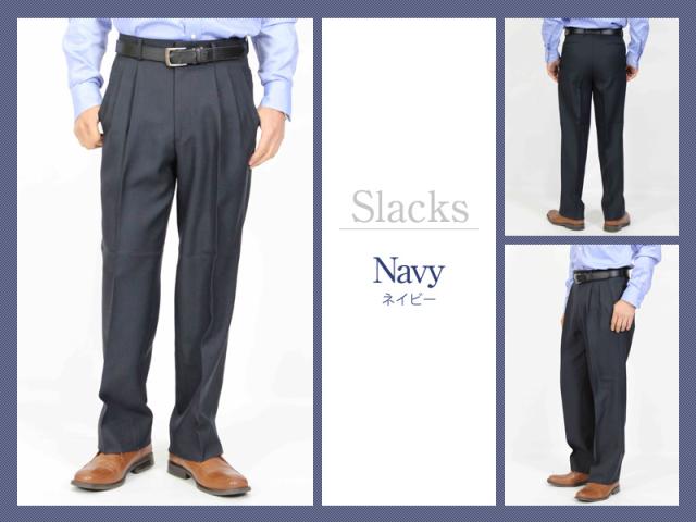 スラックス メンズ ビジネス ツータック 裾上げ済み 家庭での丸洗い洗濯 ゴルフパンツ ワーキングパンツ ユニフォーム ネイビー