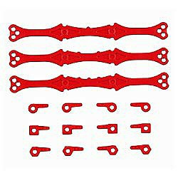 ローラーを取り付けるFRPなどとシャーシに間に挟み込んでダウンスラスト角を調節できるプレートです。1度、2度、3度の3種類の角度調整プレートにより、+3度から−3度まで1度単位で微妙なセッティングが可能。さらに、ローラーの角度を調節できる6種類のワッシャーもセットしました。プレートやワッシャーはマシンのアクセントになるレッドカラー。