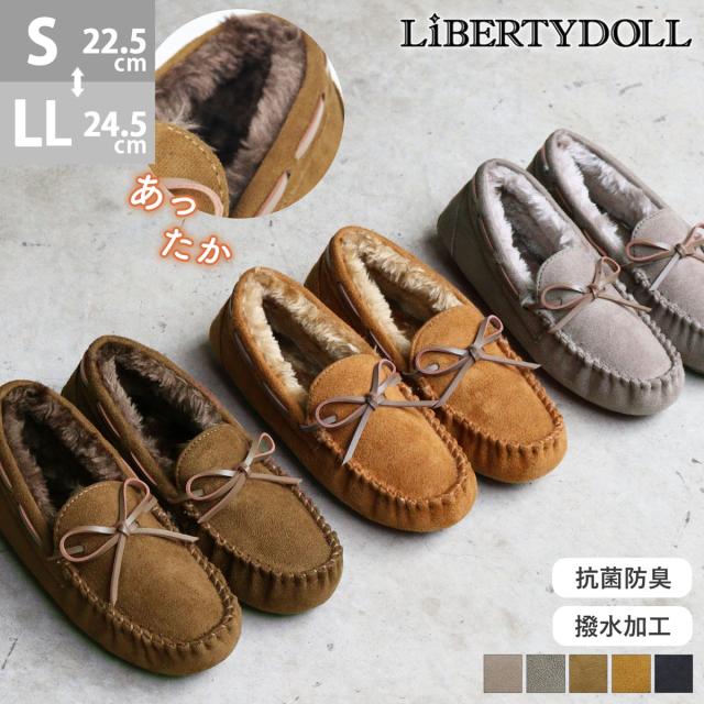 モカシン シューズ レディース 抗菌防臭 撥水加工 ふわふわ No.3200 22.5-24.5cm 寒さ対策 靴 防寒 軽量 フェイクムートン 歩きやすい おしゃれ 可愛い 婦人 黒 ブラック 屈曲ソール ボア LiBERTYDOLL リバティードール シューズ あったかい 防寒 冬靴