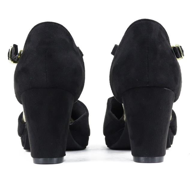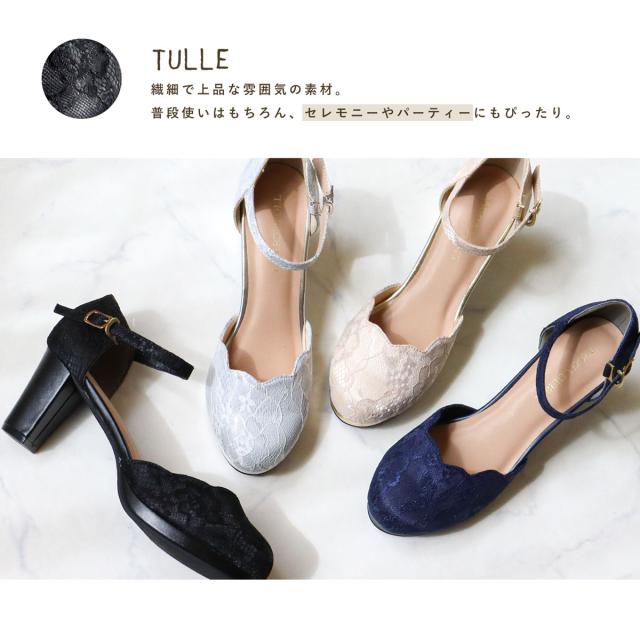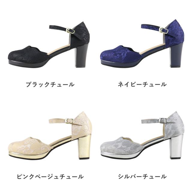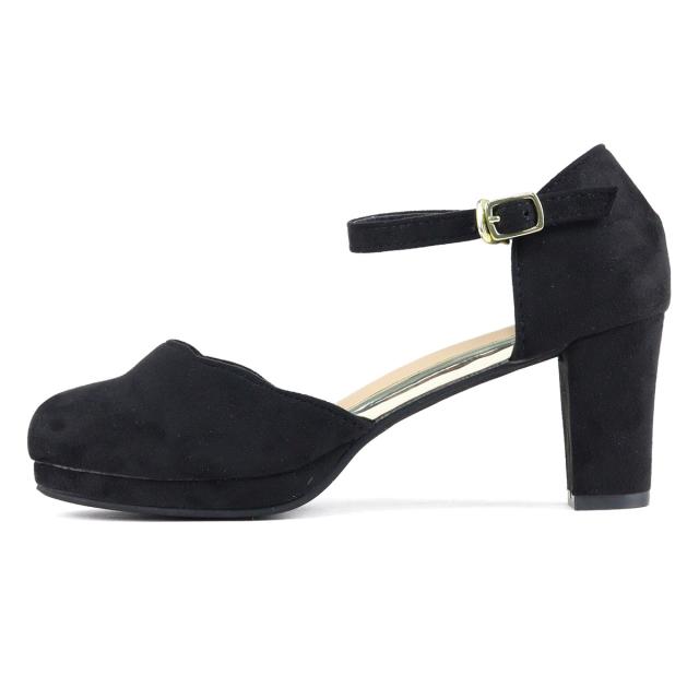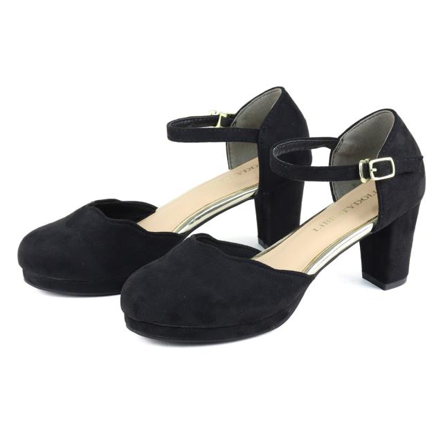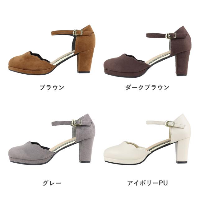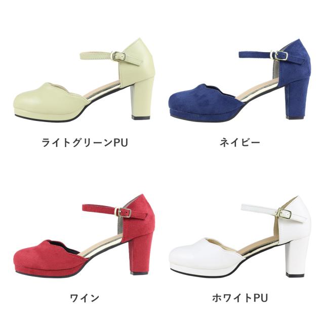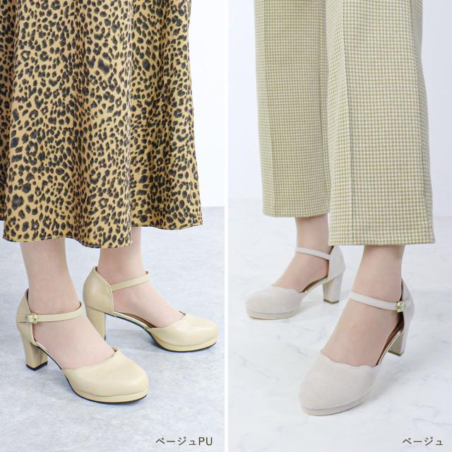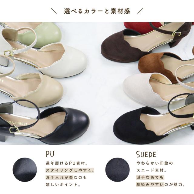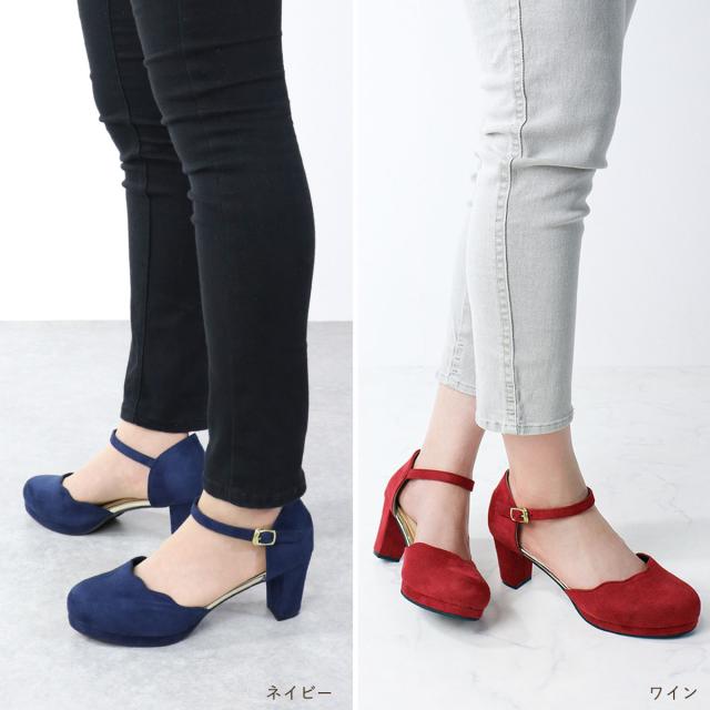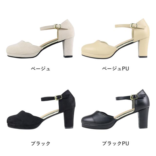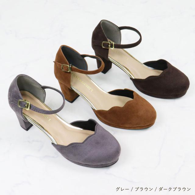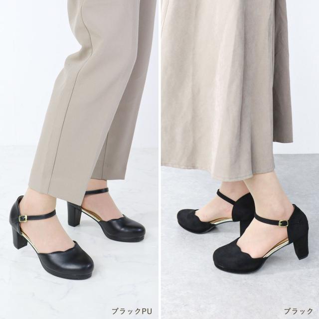 パンプス ストラップ 黒 痛くない セパレート スカラップ ラウンドトゥ アンクル 6.5cmヒール No.5480 リバティードール