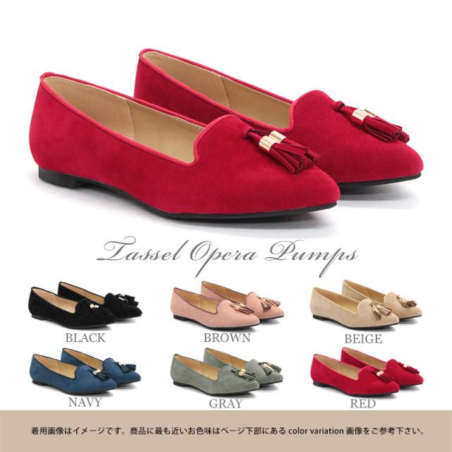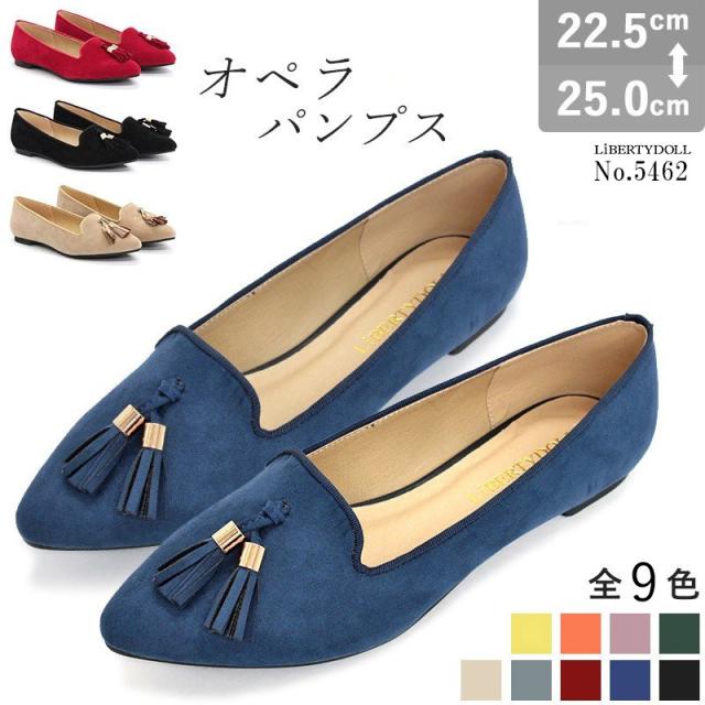 パンプス 痛くない ぺたんこ ローヒール オペラシューズ No.5462 22.5-25.0cm 歩きやすい 靴 通勤 合成皮革 スエード 脱げない タッセル くすみカラー カジュアル レディース かわいい バレエシューズ フラット リバティードール