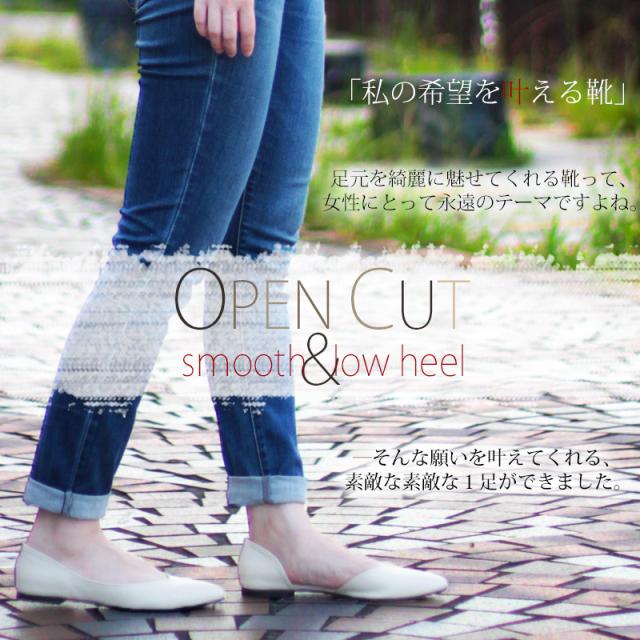 ・サイドオープンデザインで美脚効果♪歩きやすいペタンコヒールが大人気!