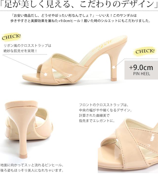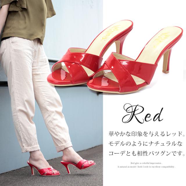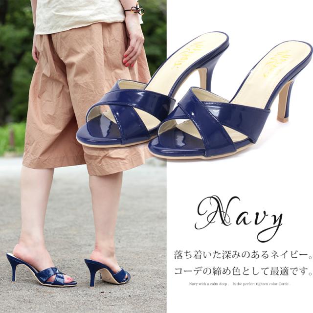 ミュール 9cmヒール 5412 ピンヒール レディース 靴 エナメル オフィス 23.0-24.5cm S-LL