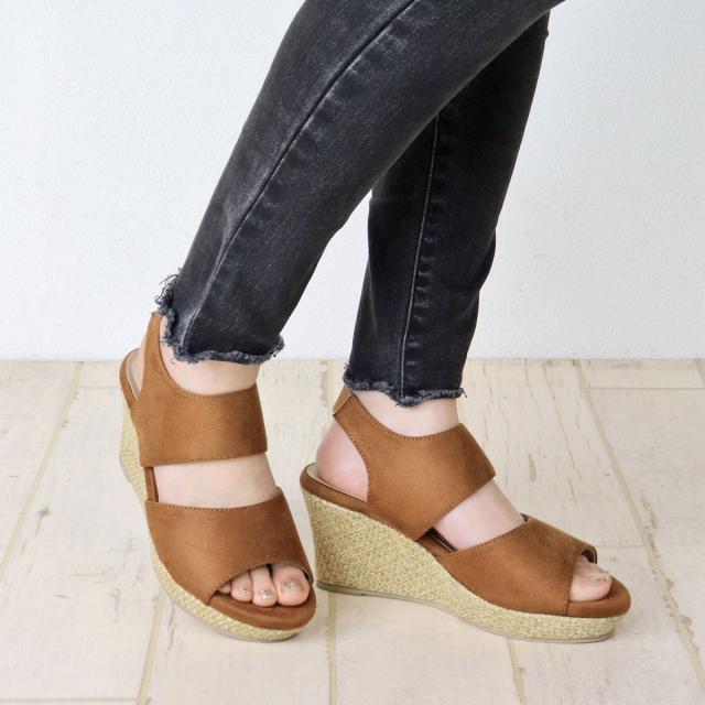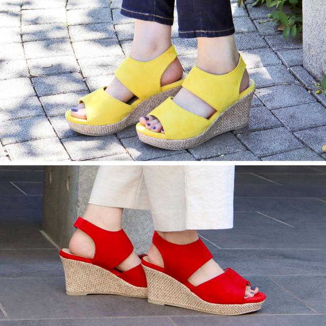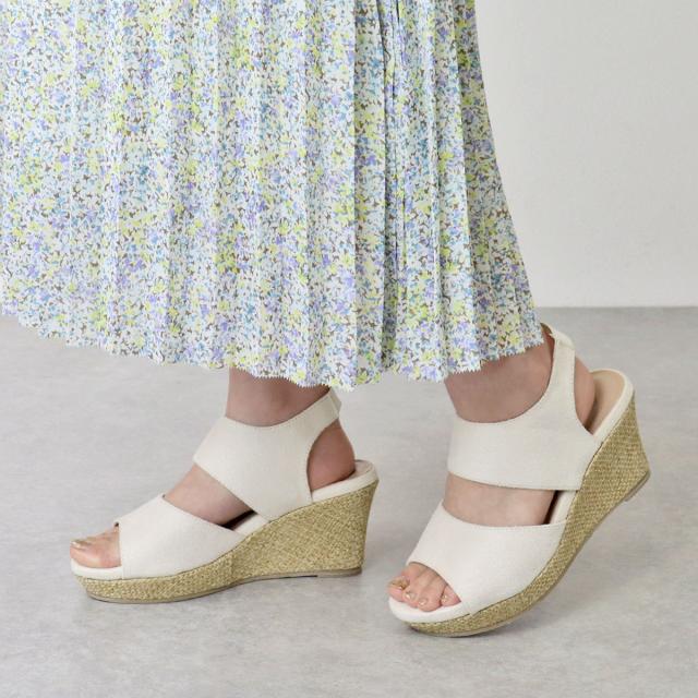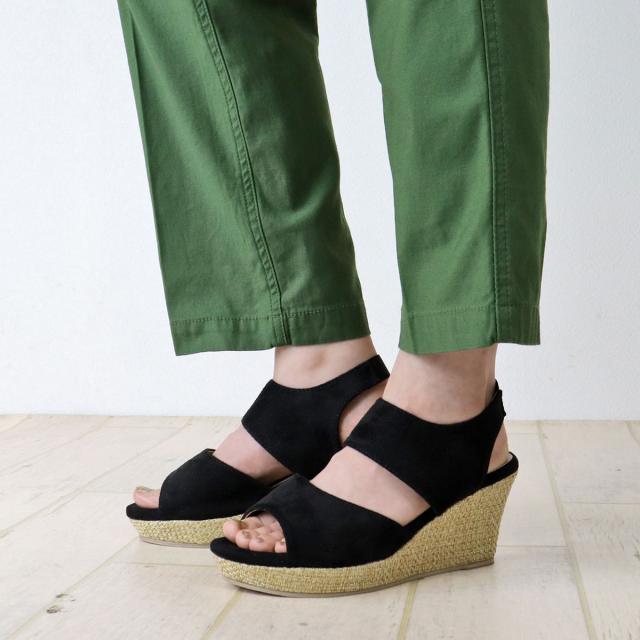 ウェッジソールは安定感があり歩きやすく、約7.5cmのハイヒールは履くだけで脚長効果を発揮!
