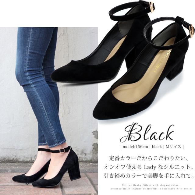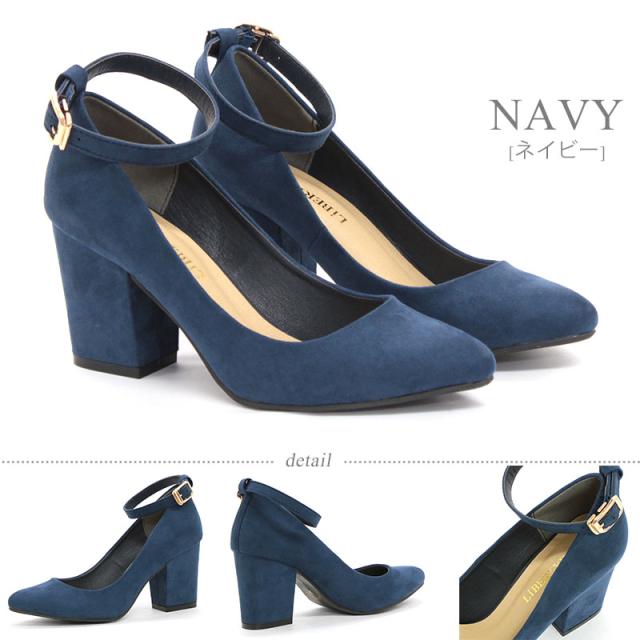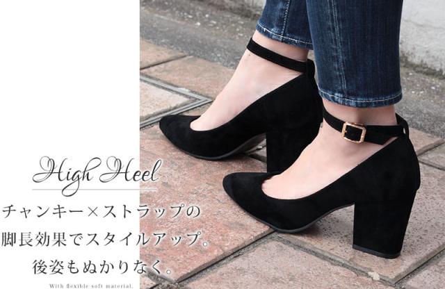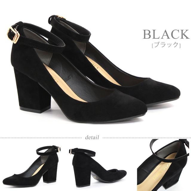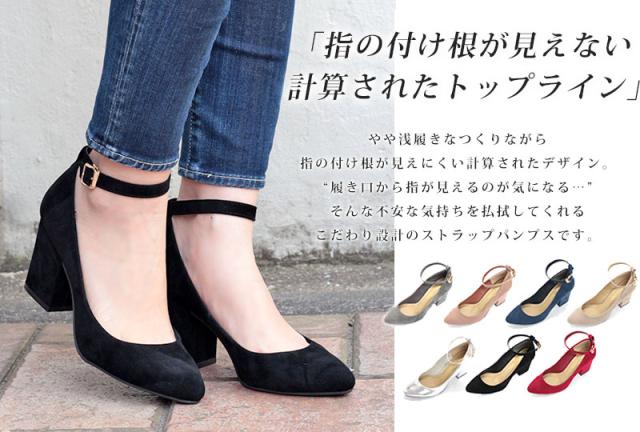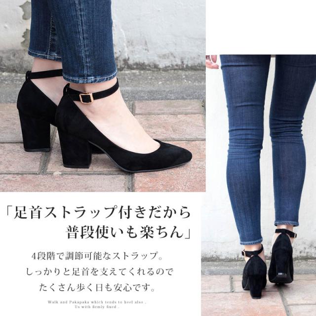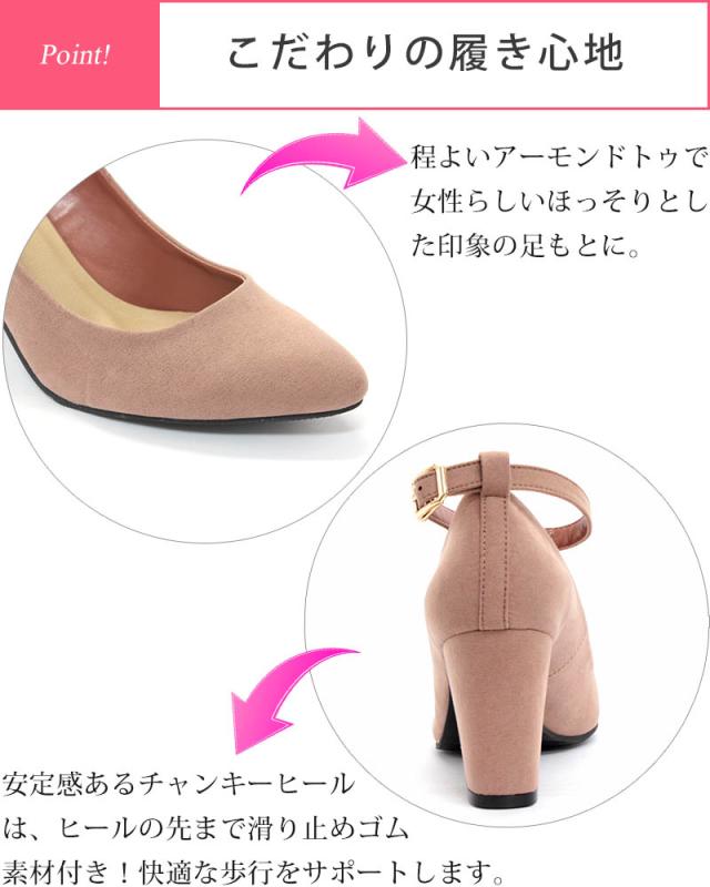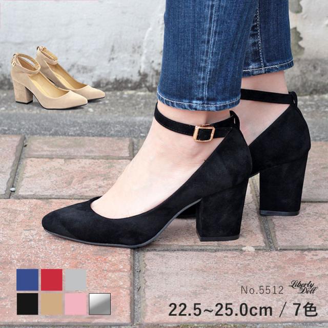 パンプス ストラップ5512 チャンキーヒール レディース 靴 スエード 脱げない 美脚 22.5-25cm