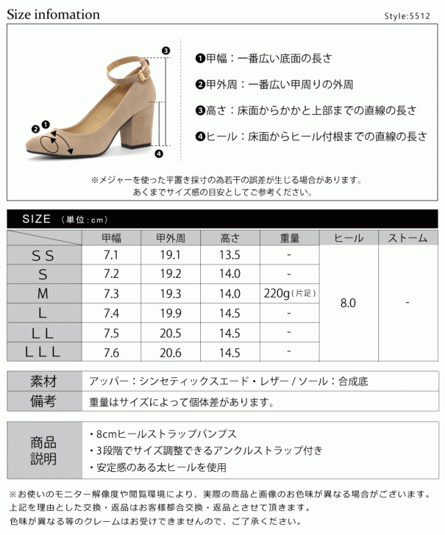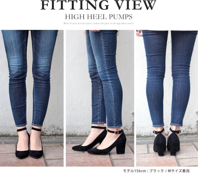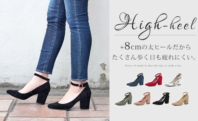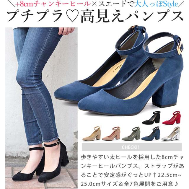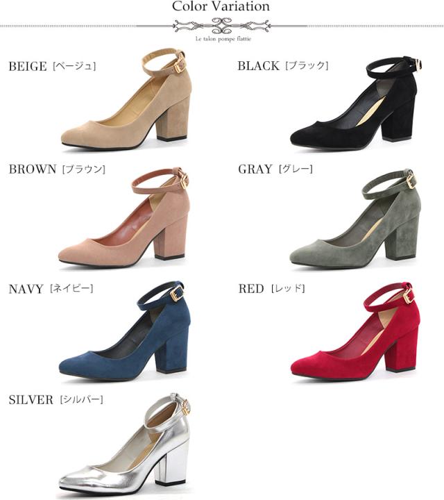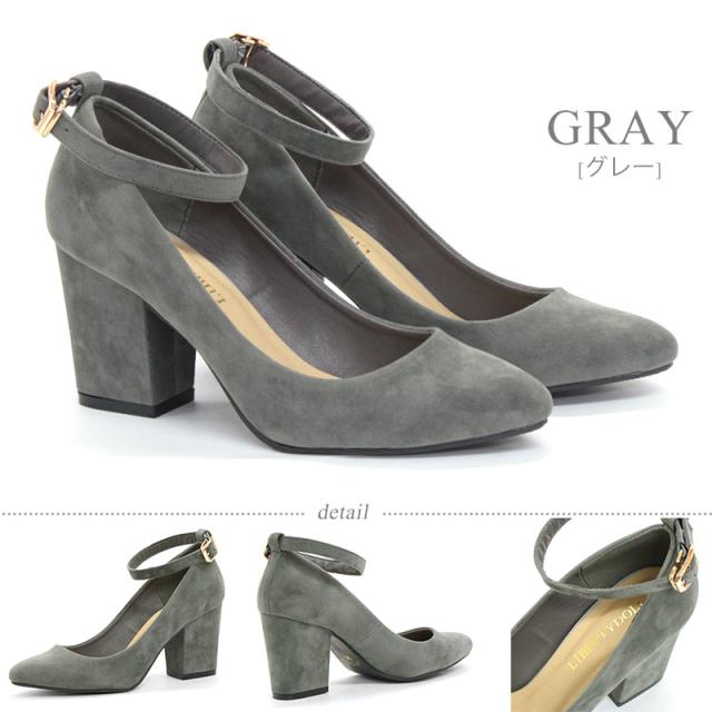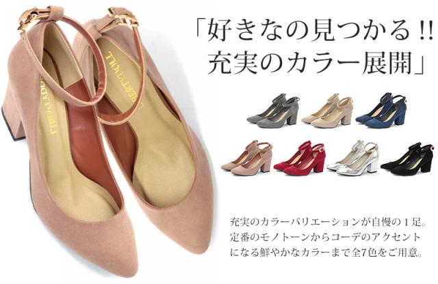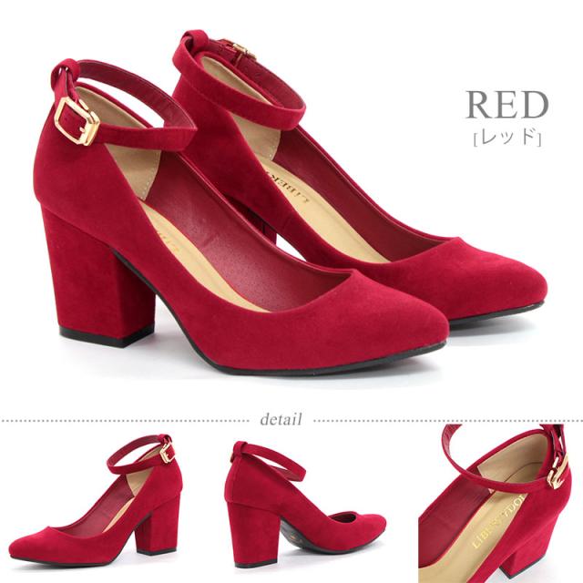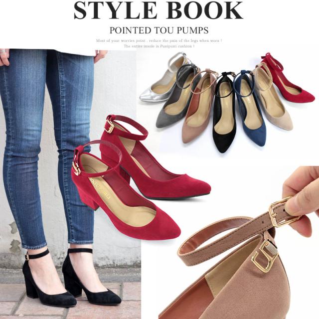 パンプス ストラップ5512 チャンキーヒール レディース 靴 スエード 脱げない 美脚 22.5-25cm