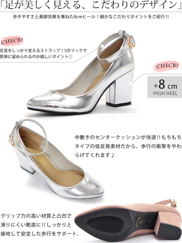 ■詳細:使いやすいベーシックなデザインで、大人っぽいコーデにも合うレディースパンプスに変貌。安定感ある太ヒールと足首ストラップだからたくさん歩けるのも嬉しいポイント。