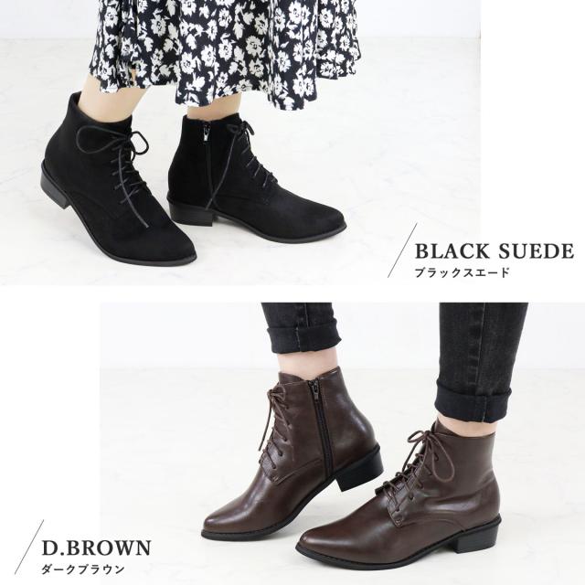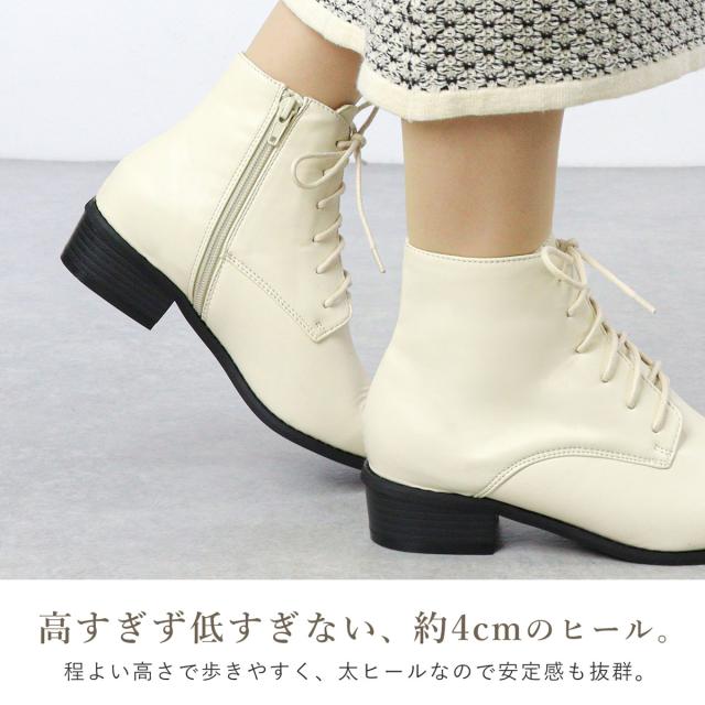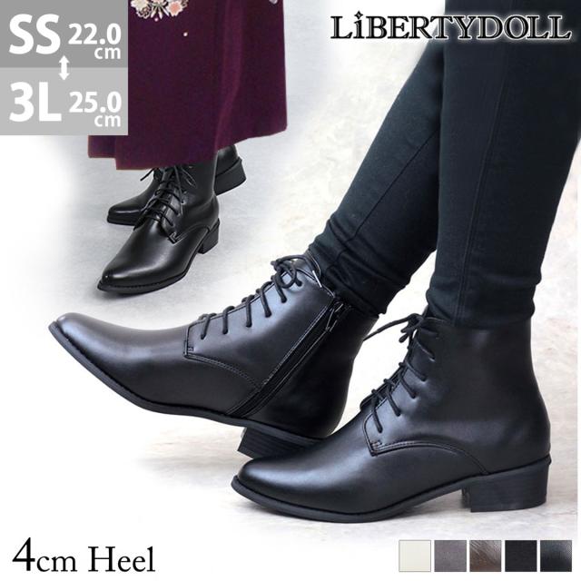 ブーツ レディース ショートブーツ 履きやすい サイドジップ 痛くない 2E 袴 レースアップ スエード 4cmヒール No.9001 22.0-25.0cm 黒 ブラック アイボリー LiBERTYDOLL リバティードール 靴 レースアップブーツ 痛くならない アンクルブーツ 編み上げ 和装 着物 袴