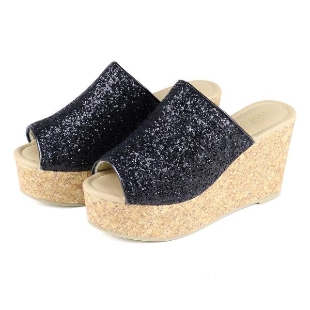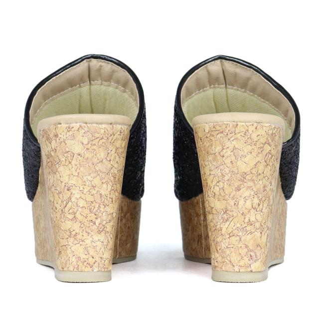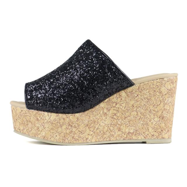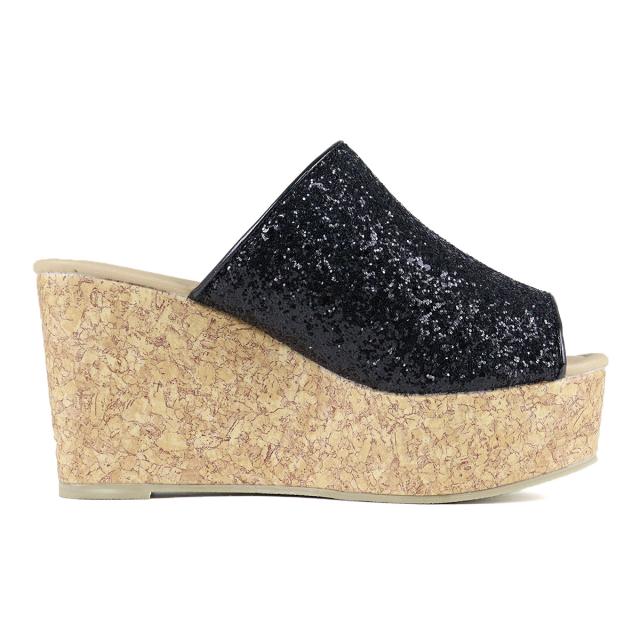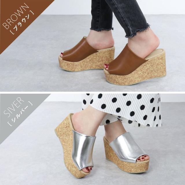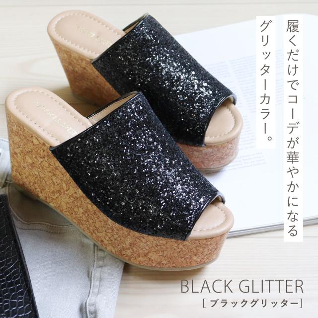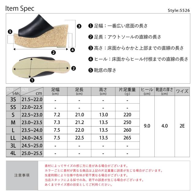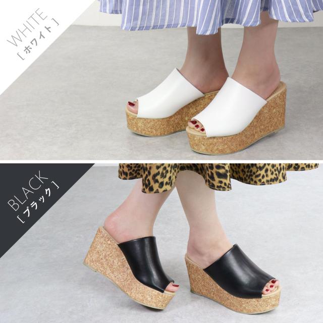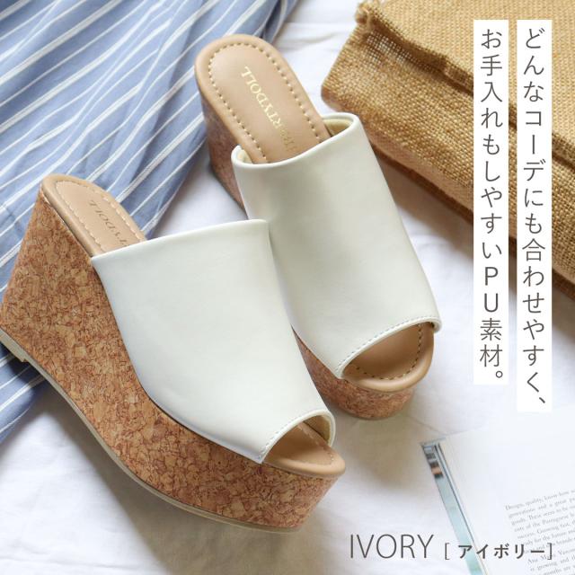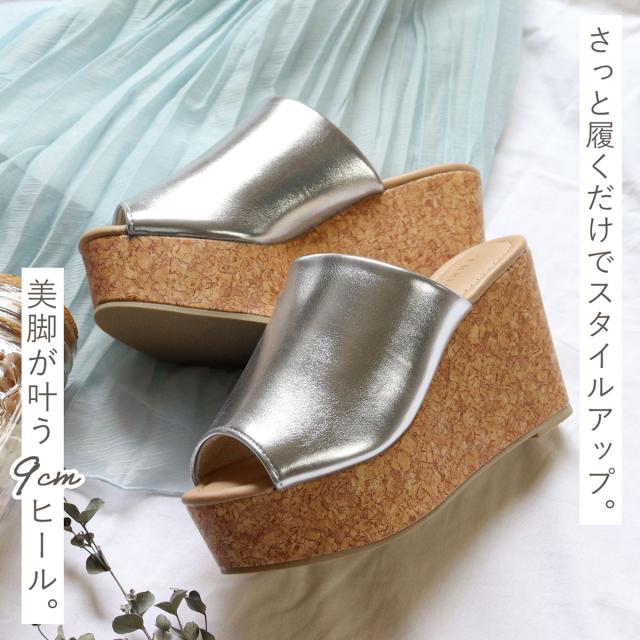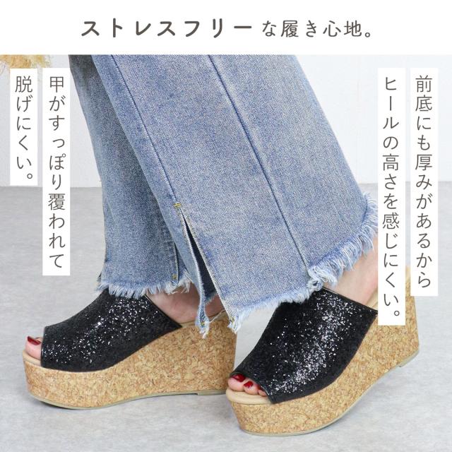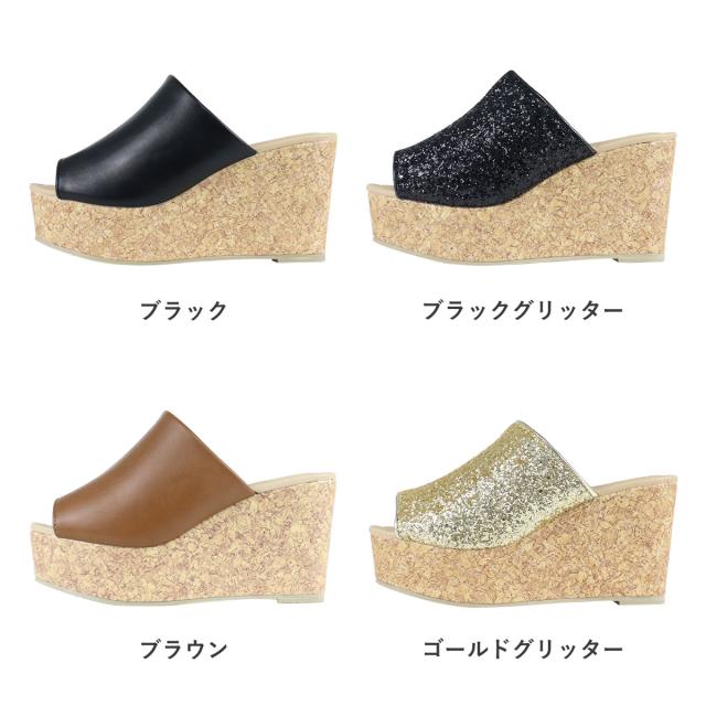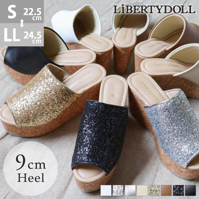 サンダル レディース 厚底 ミュール サボ ウェッジソール 黒 ブラック コルク 痛くない 9cmヒール No.5526 リバティードール
