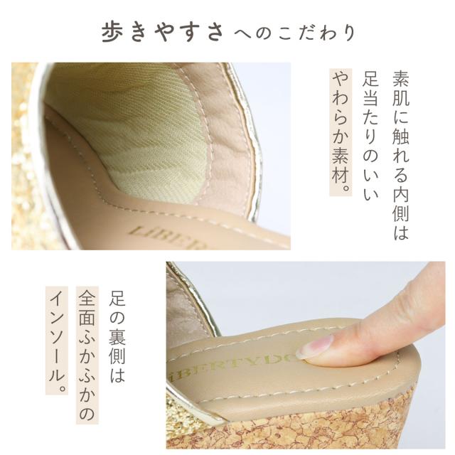 履くだけで一気にシーズンライクになれるコルクプリントのウェッジソールは、歩きやすいのも嬉しいポイント。