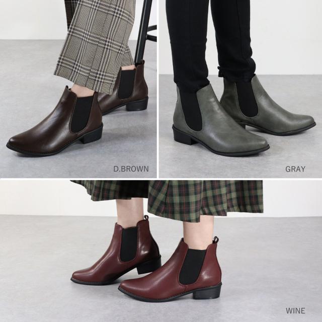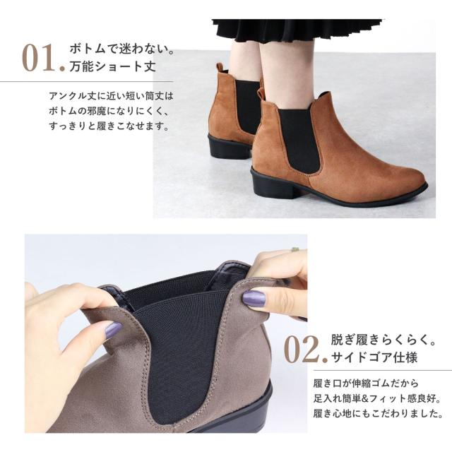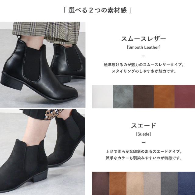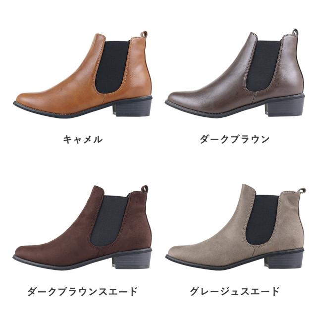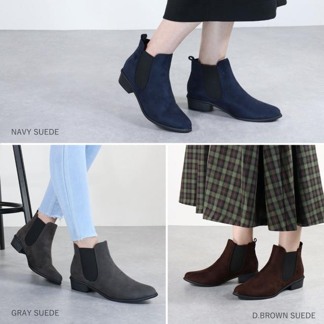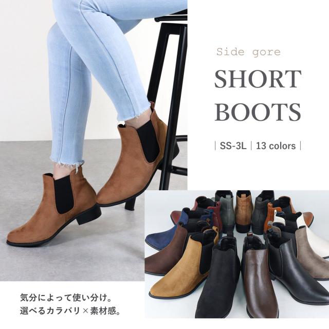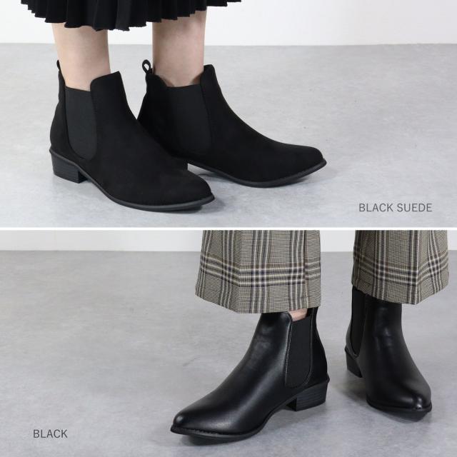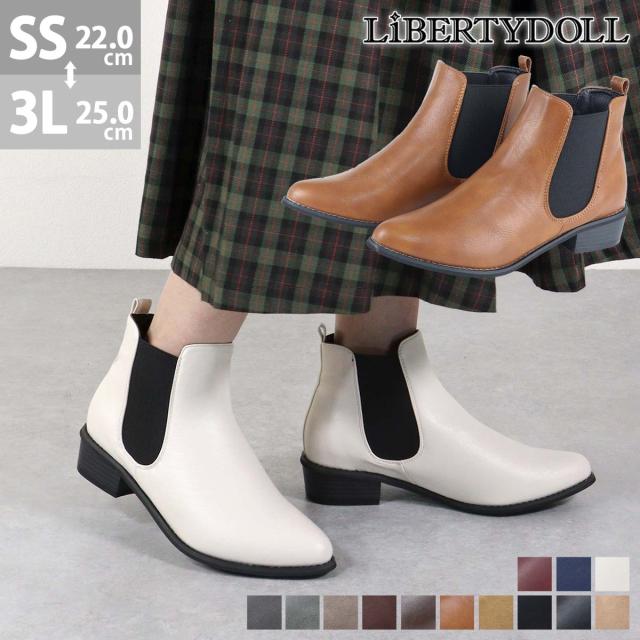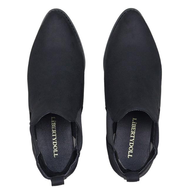 ブーツ レディース 黒 サイドゴア ショート 3.5cmヒール ローヒール 痛くない No.5448 22.0-25.0cm LiBERTYDOLL ローヒール 歩きやすい 痛くない レザー 合成皮革 2E 履きやすい スエード ブラック 秋 冬 チェルシーブーツ 靴 アンクル 足首 おしゃれ
