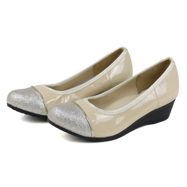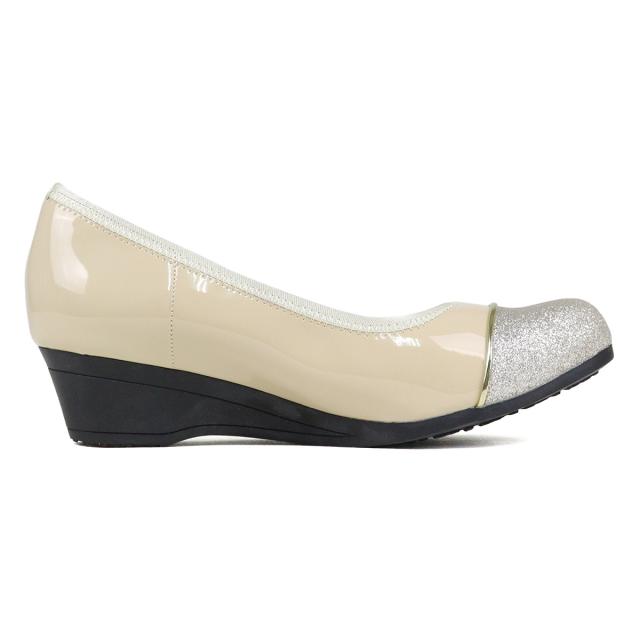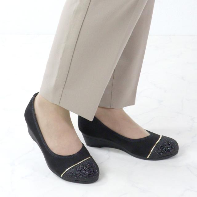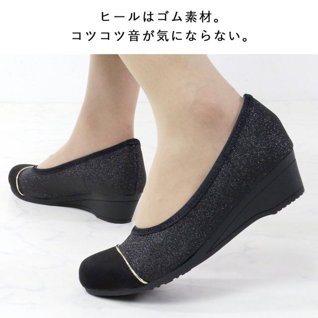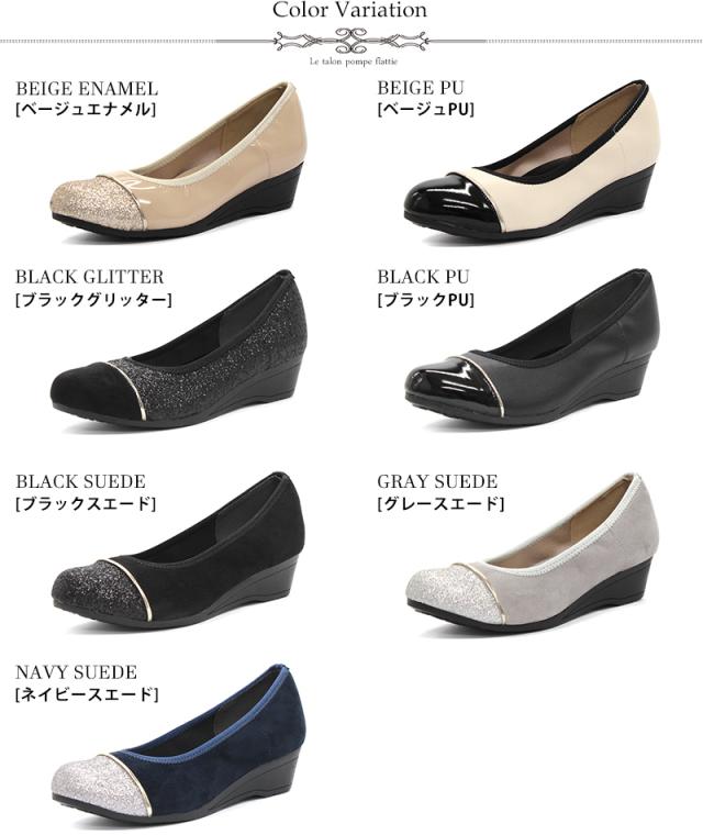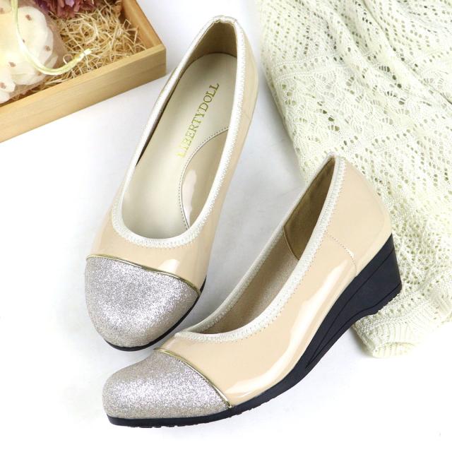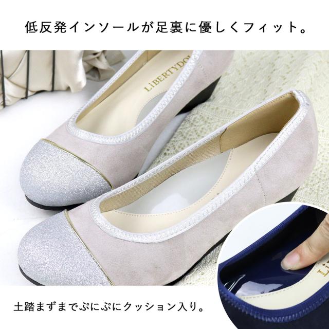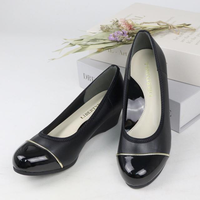 パンプス 痛くない レディース ミドルヒール 4cmヒール バイカラー ウェッジソール No.1103 走れる 静音 レザー スエード エナメル 黒 ブラック スウェード 低反発 ネイビー グリッター リバティードール