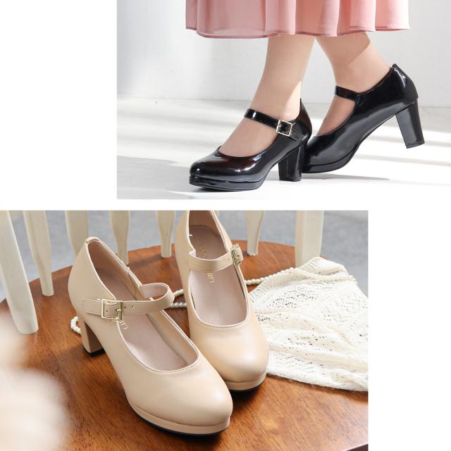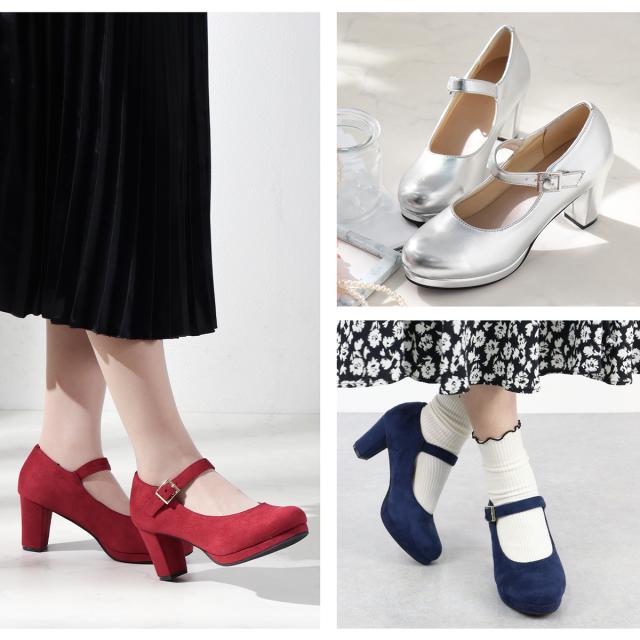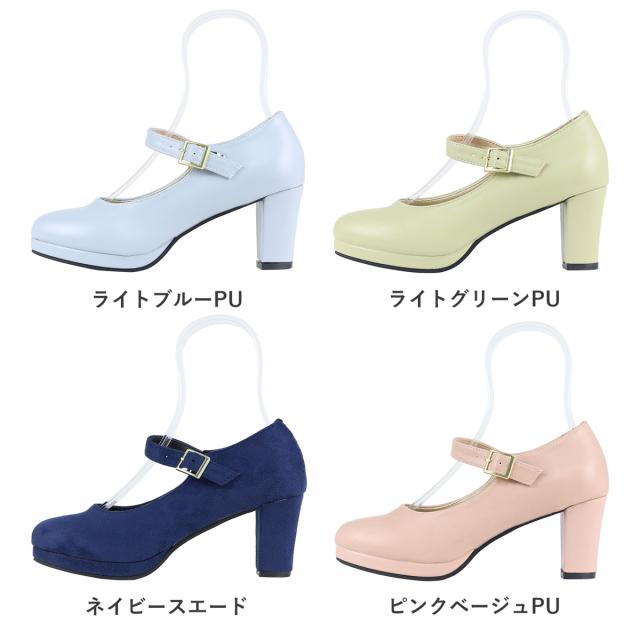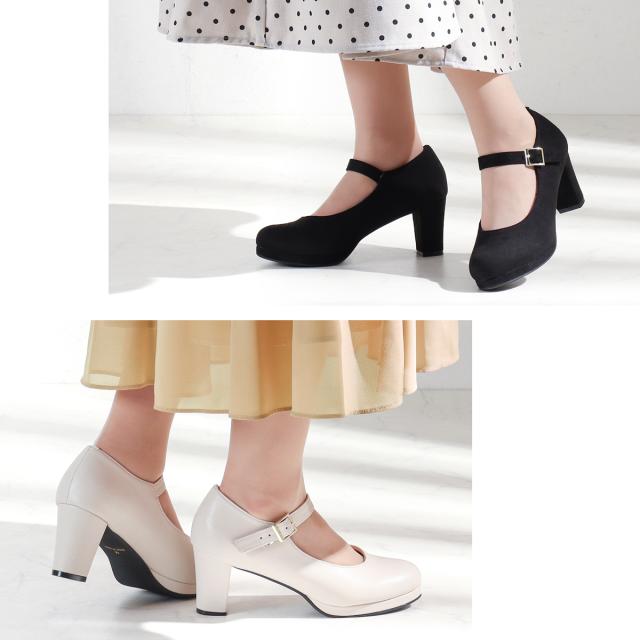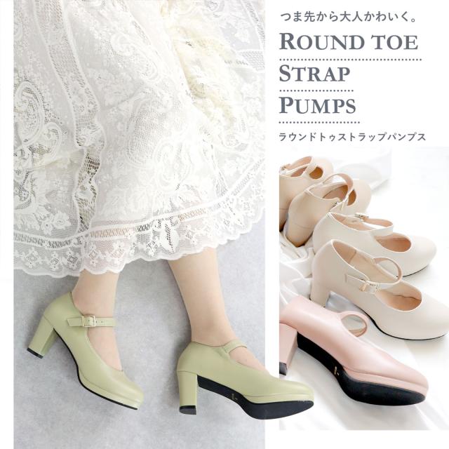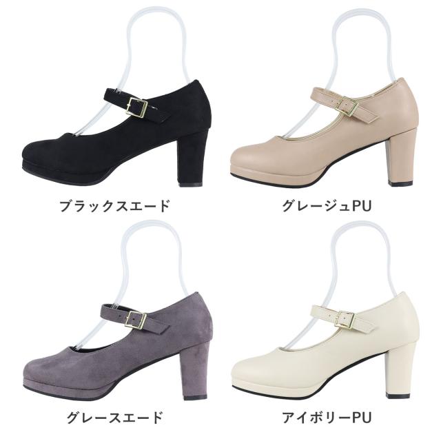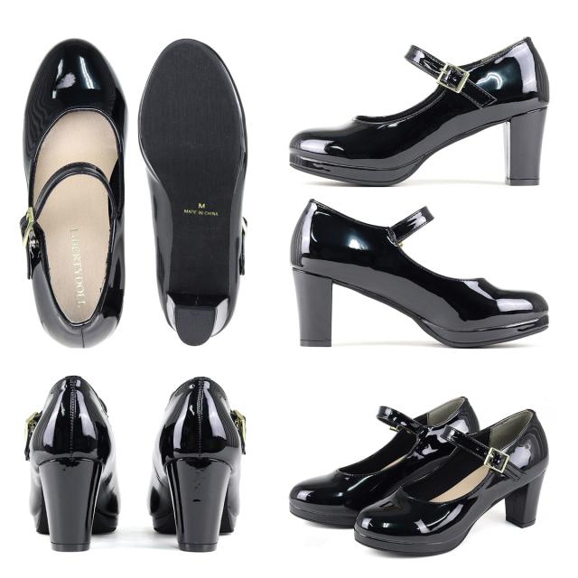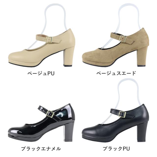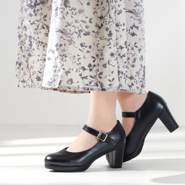パンプス レディース ストラップ パンプス 痛くない ラウンドトゥ 太めヒール 7cmヒール 黒 ブラック リバティードール No.1110
