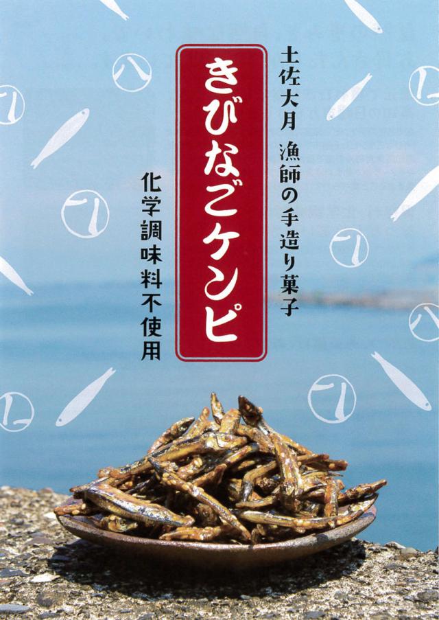 | 地元で獲れたきびなごをお菓子に。 高知の日曜市からはじまりました。 高知名物の芋ケンピと漁師の家のお惣菜をヒントに生まれた「きびなごケンピ」。日曜市で人気になり、新たな味も増えました。 高知県大月町沖の海で獲れた新鮮なきびなごを乾燥させ、キャノーラ油で揚げ、自家製の蜜とゴマをからめたお菓子です。 魚をまるごと食べられて、しっかりカルシウムもとれます。 |