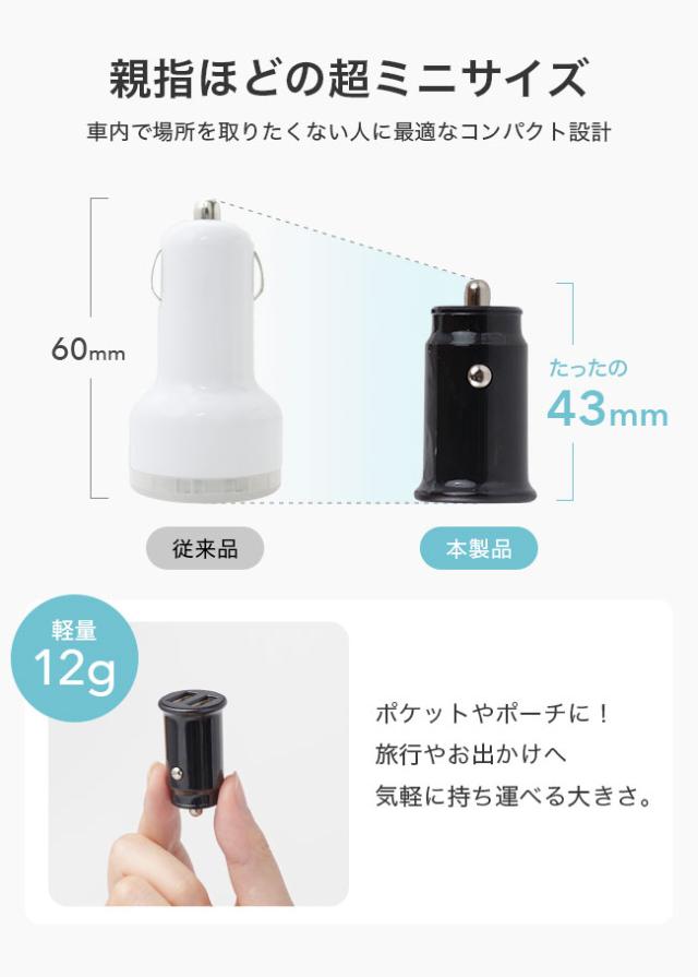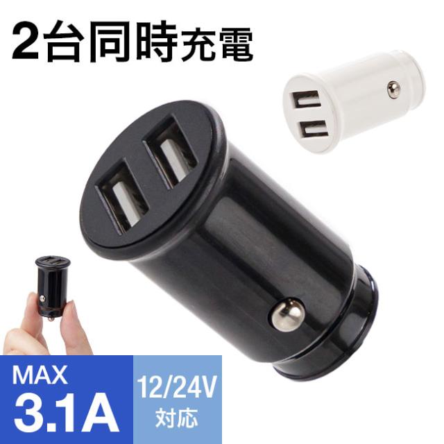 シガーソケット USB 3A 3.1A 充電器 充電 2ポート 2口 12V 24V 車載充電器 車 シガーチャージャー カーチャージャー ミニサイズ 小さい 軽量 小型 超小型 コンパクト スリム 急速充電 高速充電 ドライブ スマホ スマートフォン iPhone Android iPad タブレット