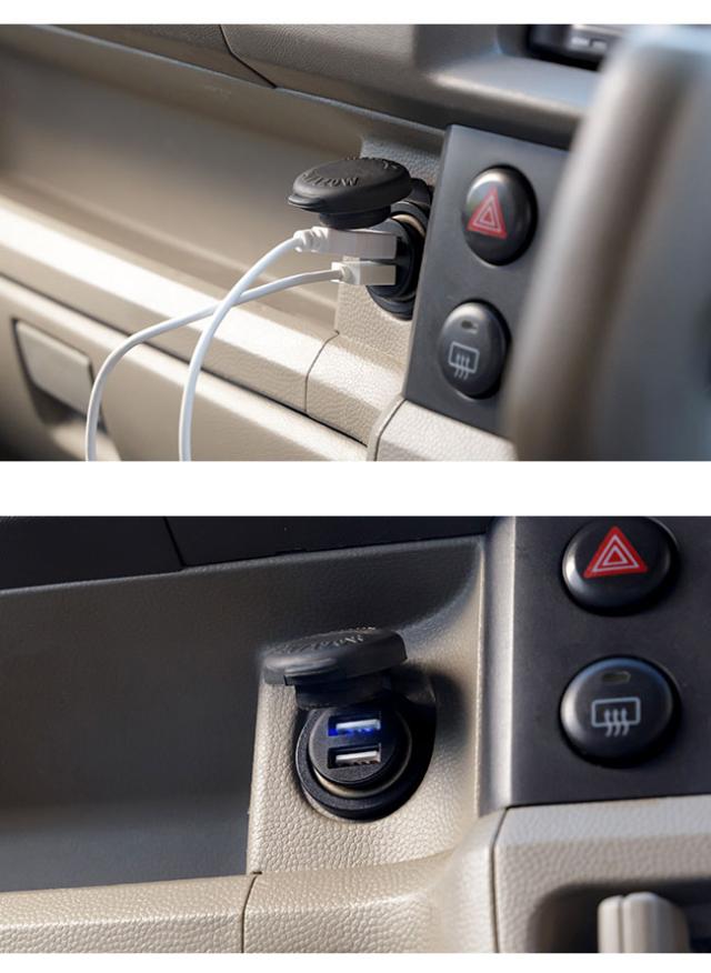 USBは2ポート(2口)。片方でスマホ、もう片方でタブレットというような2台同時充電が可能。友達や家族とドライブ中にスマホのバッテリーが無くなってしまいそう!という時にも安心です。