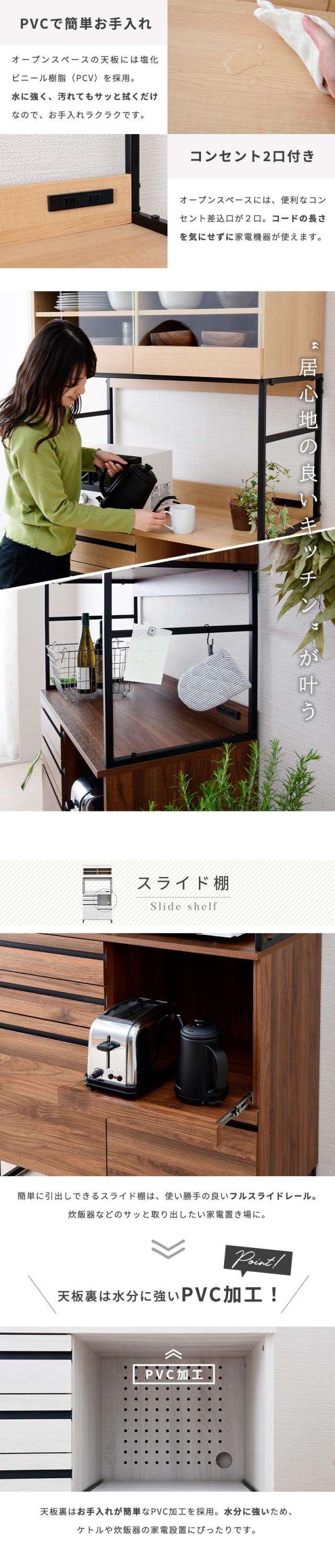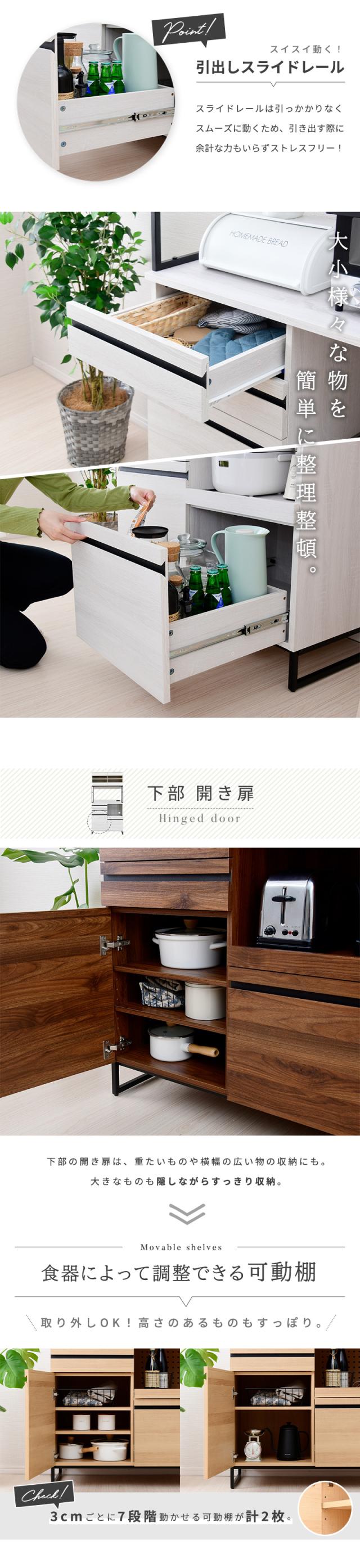 キッチンボード アイアン 90 食器棚 おしゃれ レンジ台 大型レンジ対応 スライド棚 レンジボード 収納 コンセント付き キッチン収納 ラック キャビネット チェスト 炊飯器ラック 家電収納 収納棚 スチール シンプル 北欧 カフェ風 ホワイト