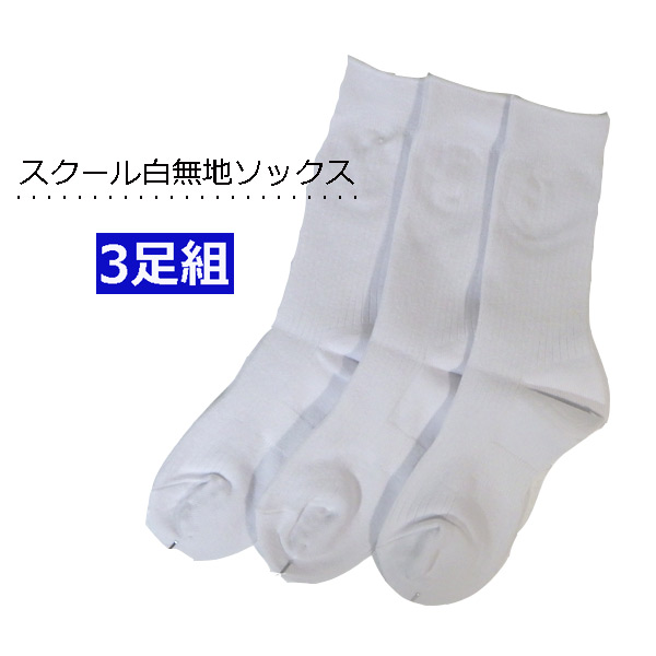 白無地ソックス スクールソックス 【3足組】 日本製 丈夫なつま先かかと補強 靴下 キッズ