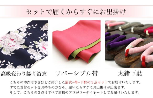 浴衣 紺 セット レトロ高級変わり織り綿浴衣3点セット「紺地に牡丹と桜古典柄」