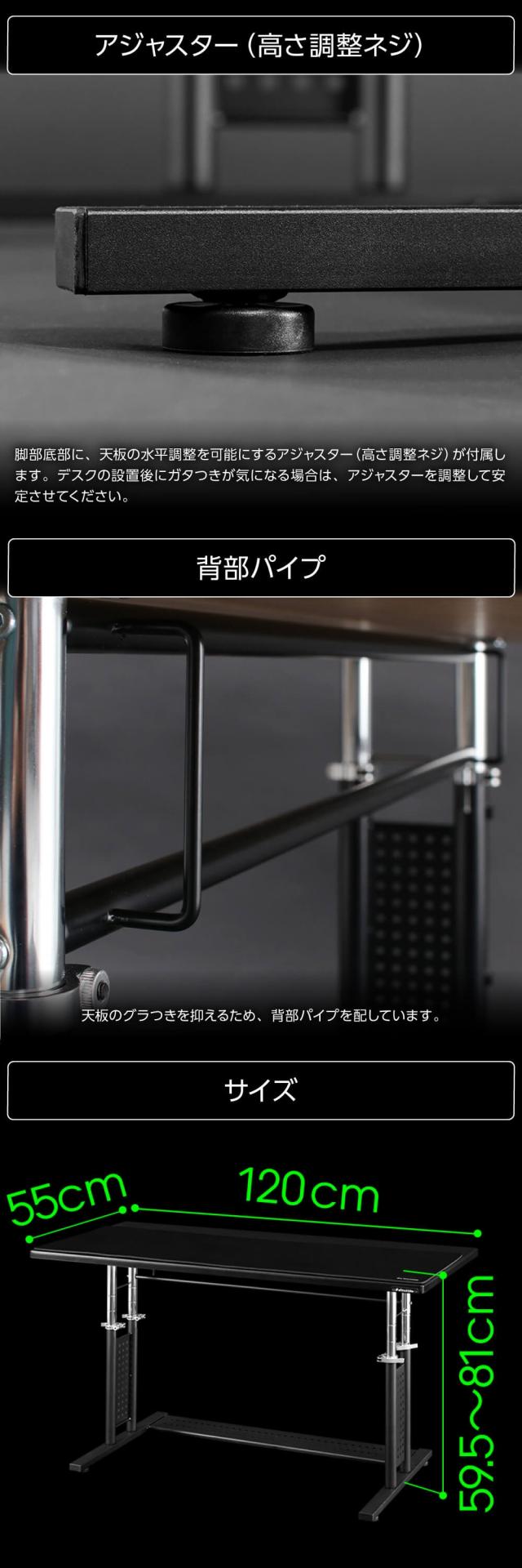 ★ デスクラックやモニターアームなど、天板に荷重がかかりやすい環境を想定している方、本格的なゲーム環境を構築したい方に最適なデスクとなっています。