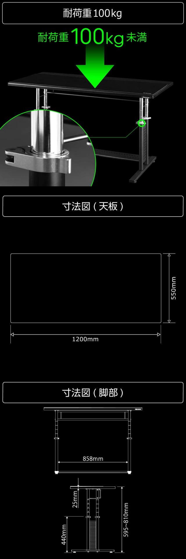 ・幅1200mm×奥行550mm×高さ595mm(595〜810mm)