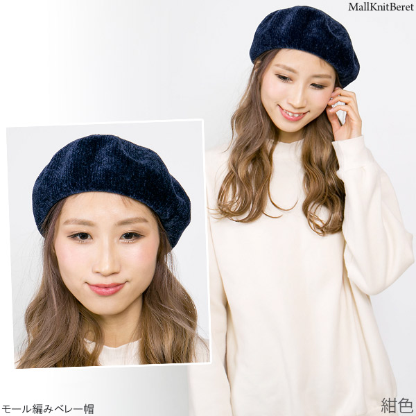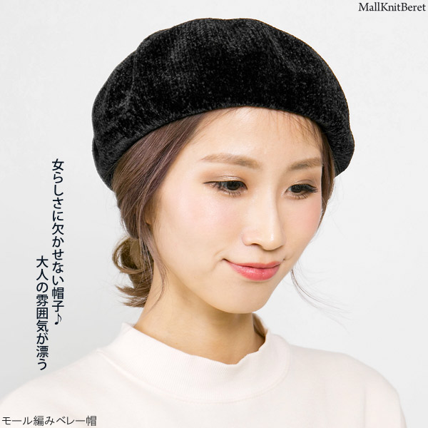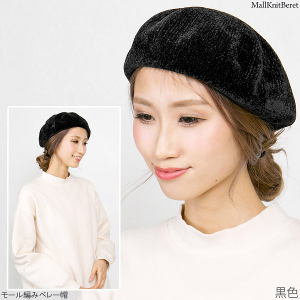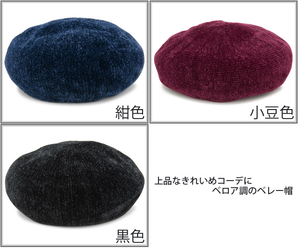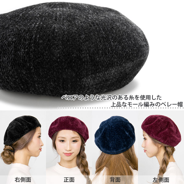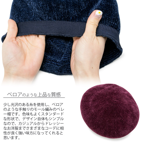 ベレー帽 秋冬 [メール便可] 帽子 レディース ベロア調 / モール編みベレー帽