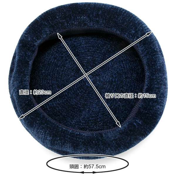 サイズ表記57.5cm(頭囲:約57.5cm、被り口の直径:約15cm、直径:約23cm)