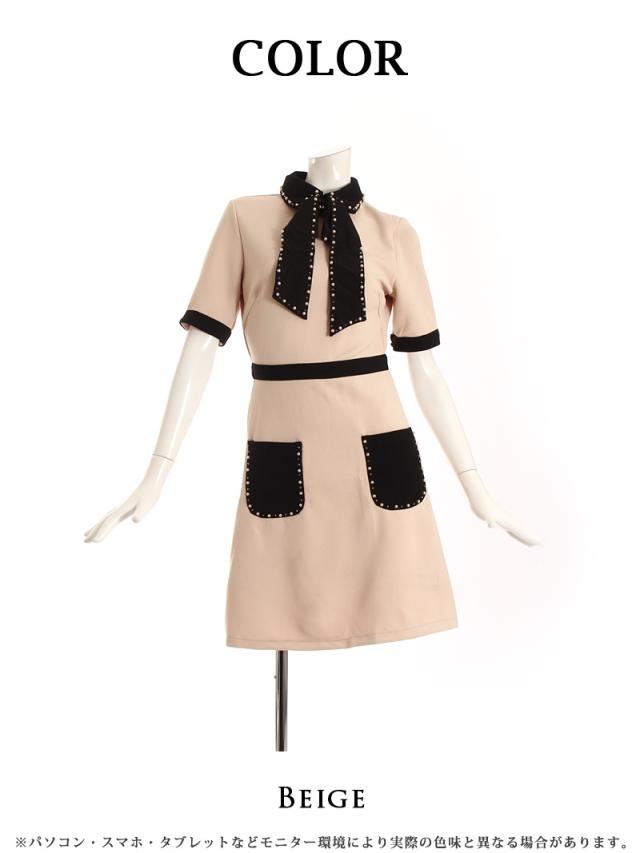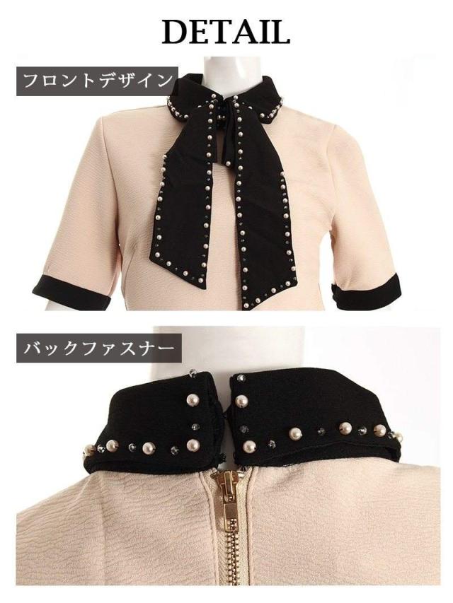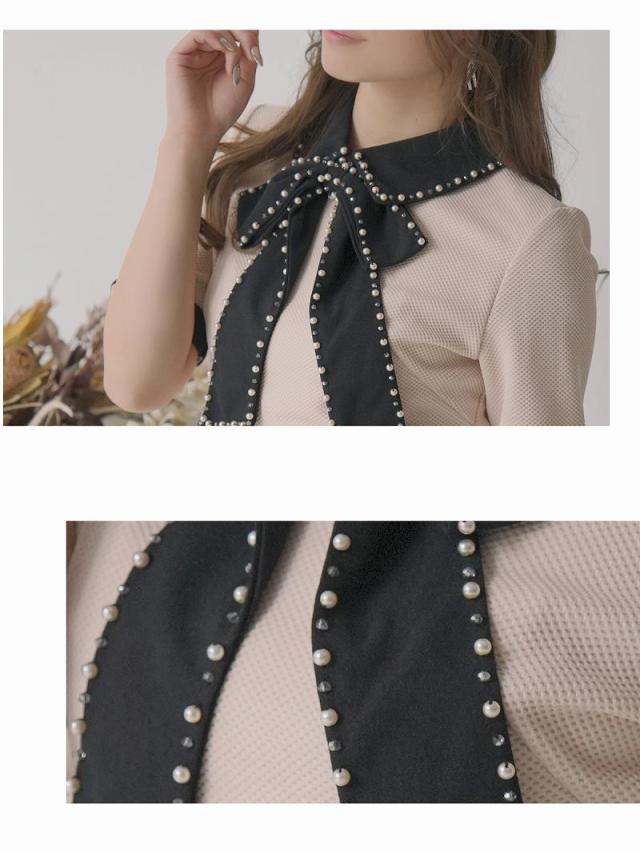 ☆パールが施されたリボンタイできっちり感もフェミニンさも演出してくれるキャバクラドレス。